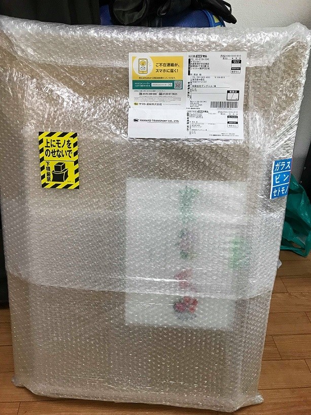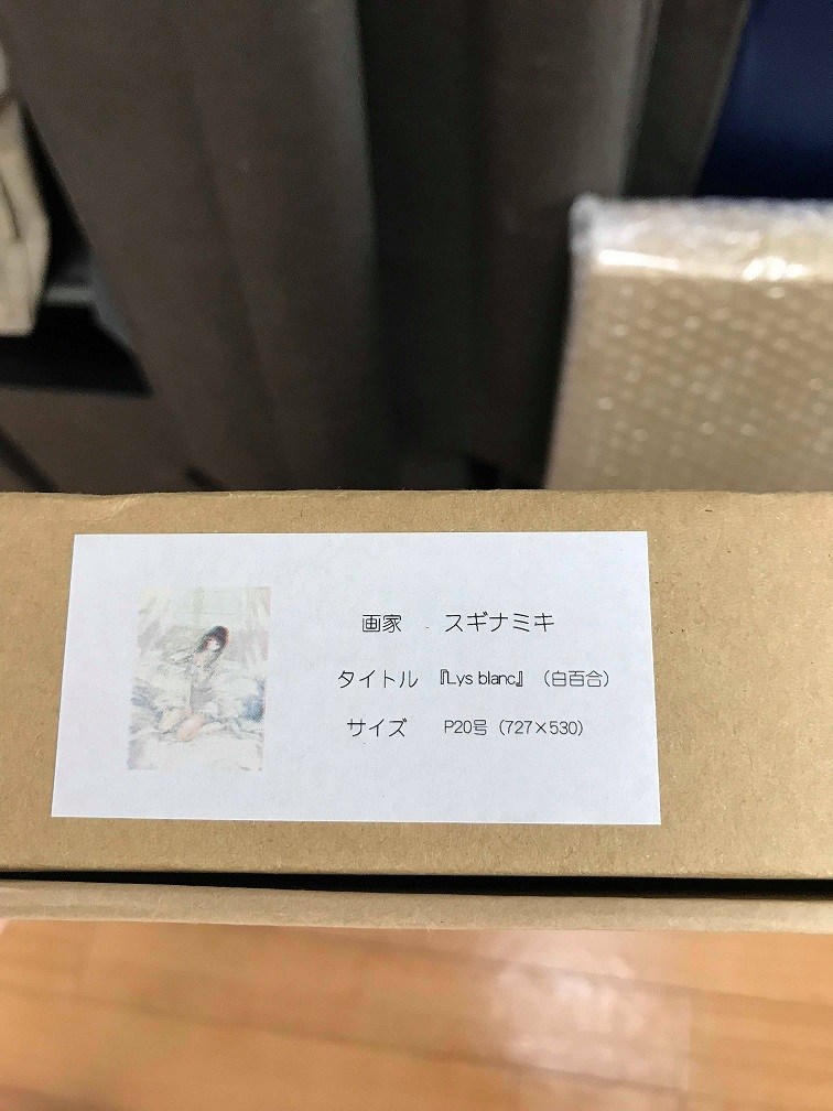 箱子上面貼著小貼紙 寫著畫家、畫名、Size