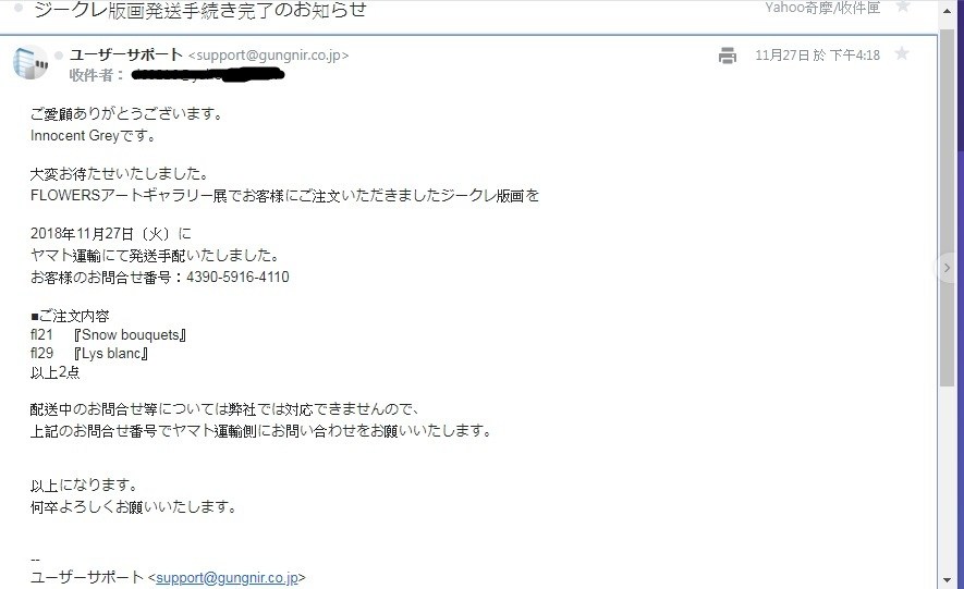 11/27 IG社發來出貨的Email (真的是等了半年啊XD)