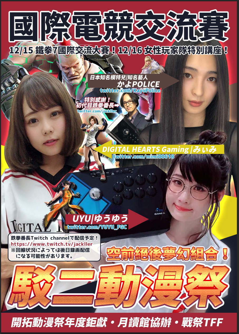 12月15日於高雄駁二動漫祭即將舉辦鉄拳7國際交流賽,來自日本的三位職業女選手如下: