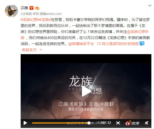 最終一切猜想在今天上午得到了實錘,遊戲官網正式發布IP信息並定名《龍族幻想》,江南也再次在微博上發聲,確認《龍族》正版IP授權事宜,更有由江南真人出鏡的全新宣傳片在同一時間首發。