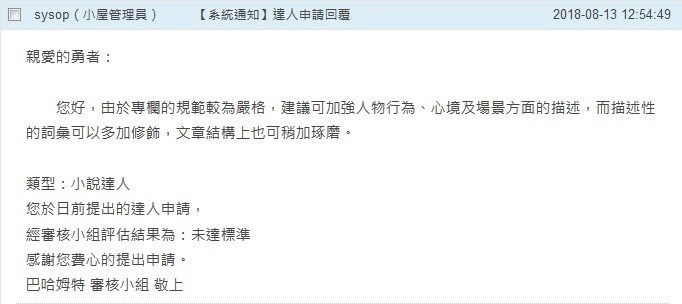 就這樣改來改去後,又到可以申請達人資格的時間了,於是我又仍了申請單出去。
