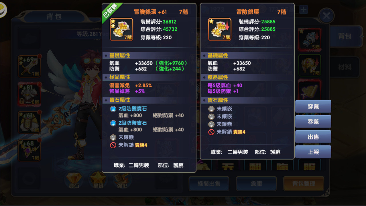 在提升戰力的方面,影響最大的莫過於裝備,裝備除了穿戴等級之外,還有星等和品質的差別,品質從最低的綠色、藍色、橘色到最高級的紅色,星等則是從無星等依次向上,目前最高看到的是三星等,不過星等的出現實在是滿靠運氣的,三星更是少之又少,還是以一星較為大宗。