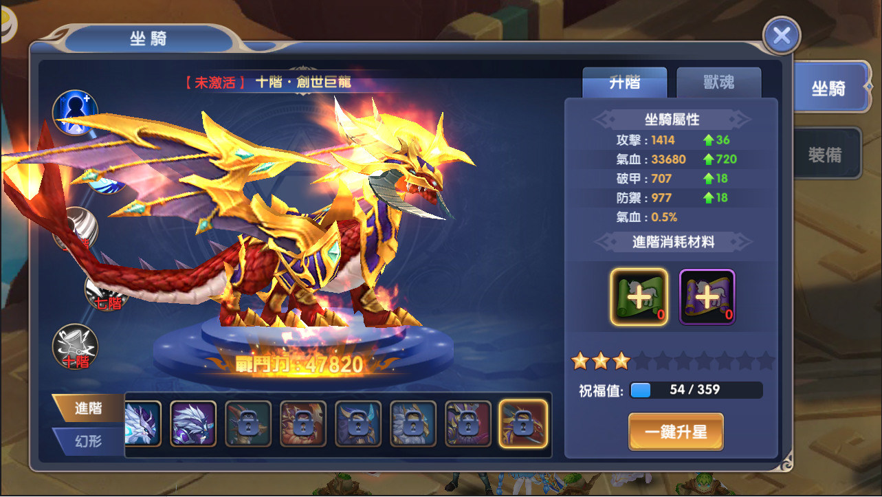 其次提升戰力的地方就莫過於精靈和坐騎,兩者雖然名稱不同,但在系統的設計上是較為相似,提升兩者最主要的方式就是增加他的星等,當星等到達10星之後就會上升一個階層,外觀也會隨之改變,但精靈還多了一個功能,就是能夠吞噬裝備來提升等級,每當打到裝備的時候都能提升戰力,又能夠順便清理背包,一舉兩得。