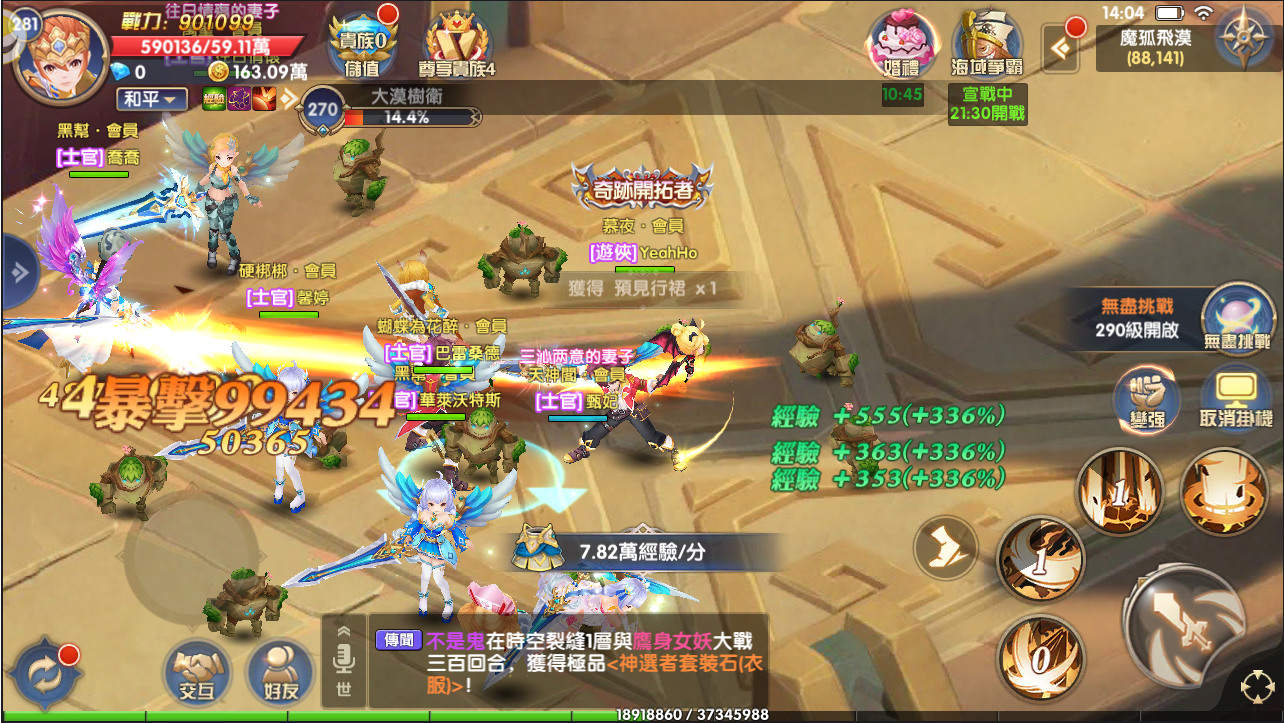除了隨時能玩的系統外,遊戲中也有特定時間才會開啟的限時活動,而這些活動的獎勵都相當豐富,能不能超越別人就看有沒有參加這些東西。活動的類型主要分成兩種,PVP和PVE,PVE類型的像是回答問題、蒐集材料或是單純進入地圖掛機,通常獎勵都是經驗值,而PVP部分的獎勵則是強化資源為大宗,無論是哪種類型的活動都非常推薦參加,活動的時間大多是在晚上六點~九點半之間,應該是要配合上班族的作息而設計的。