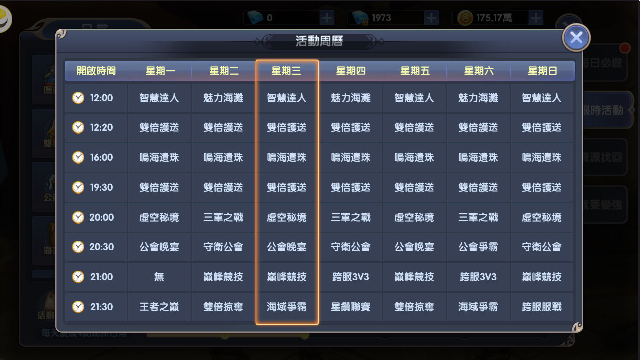 限時活動週期表