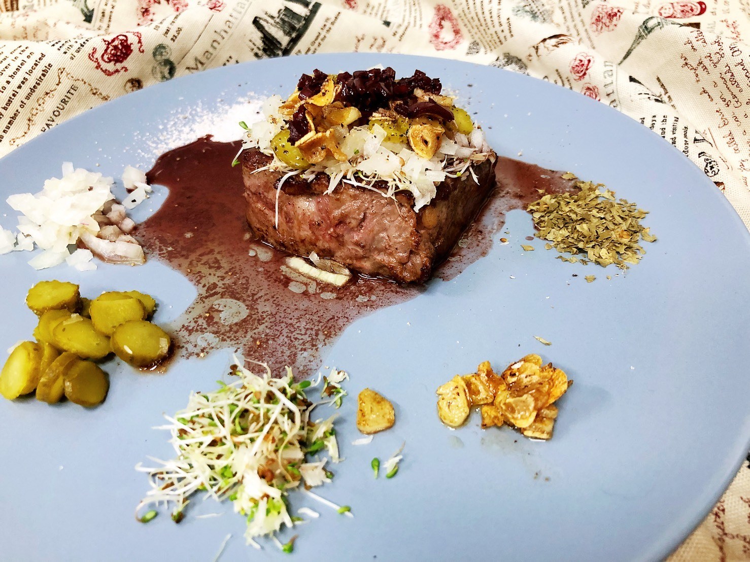 舒肥紐約客紅酒醬佐醃製黃瓜生洋蔥