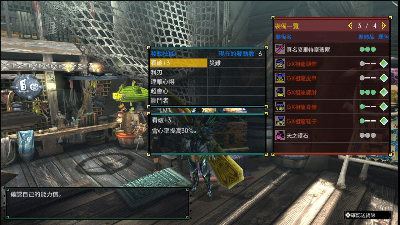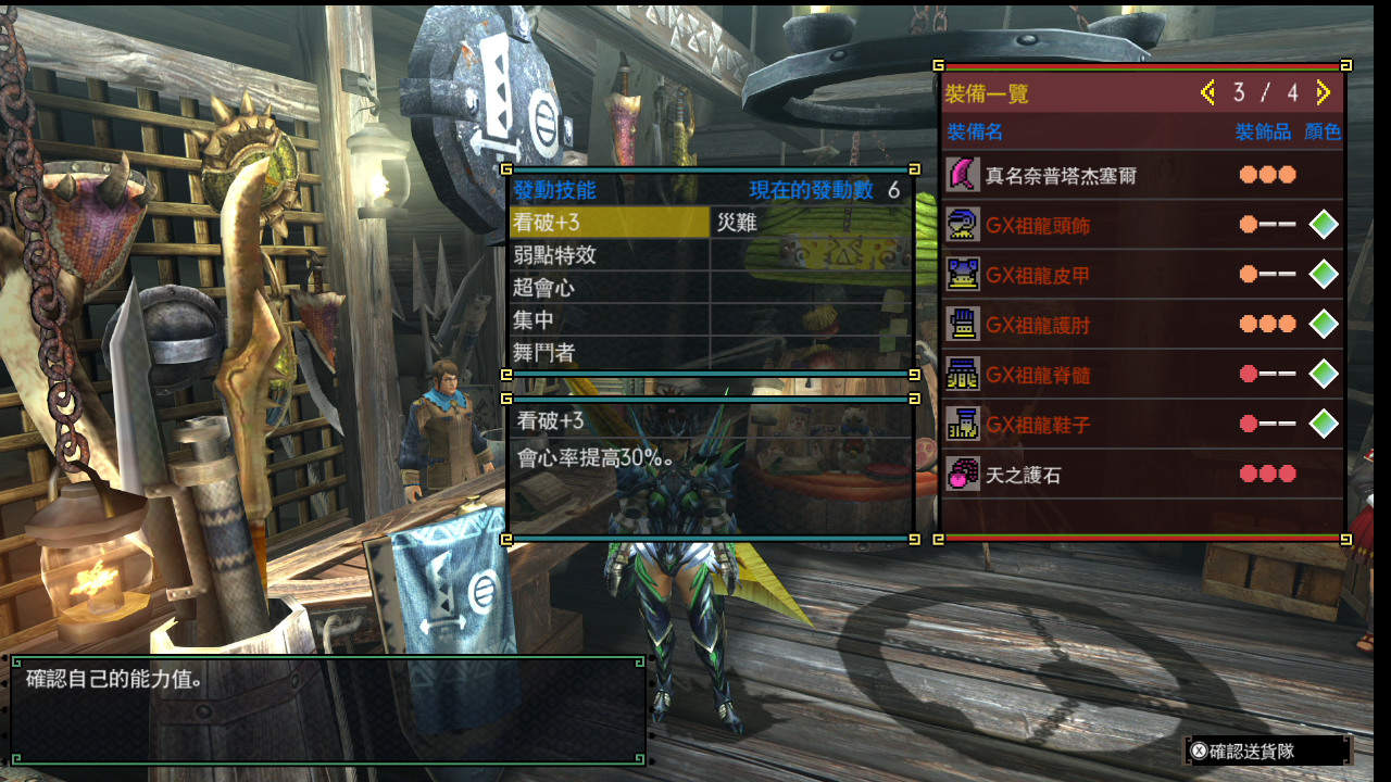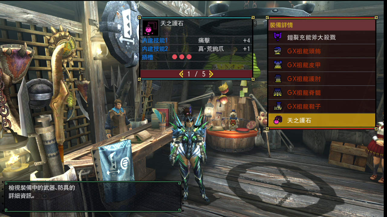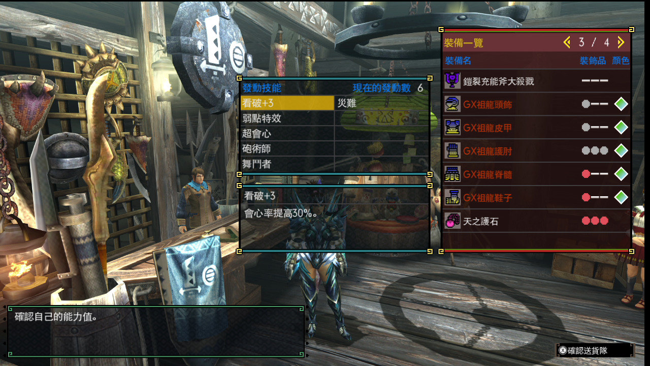 備註:太刀、槌、狩獵笛、長槍、銃槍、斬斧、充能斧都能直接穿一套+以上技能