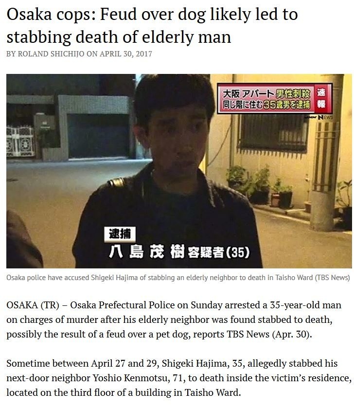 https://www.tokyoreporter.com/japan/osaka/osaka-cops-feud-over-dog-likely-led-to-stabbing-death-of-elderly-man/