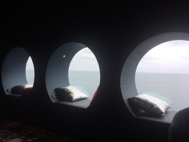 12樓的棕櫚閣晚上是付費酒吧,不過白天去看時可以隨便坐,那邊有大量座位,而且可以看船頭的風景。然後有小螺旋梯下去,可以透過玻璃參觀控制室。可能知道這邊的人不多,我去的時候相當空曠。
