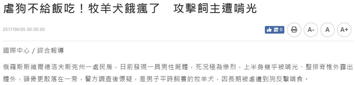 牧羊犬餓瘋了 攻擊飼主遭啃光(狂犬病)