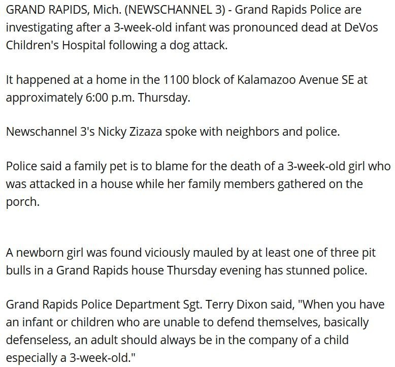 3-week-old infant dies following dog attack in Grand Rapids(狂犬病)②