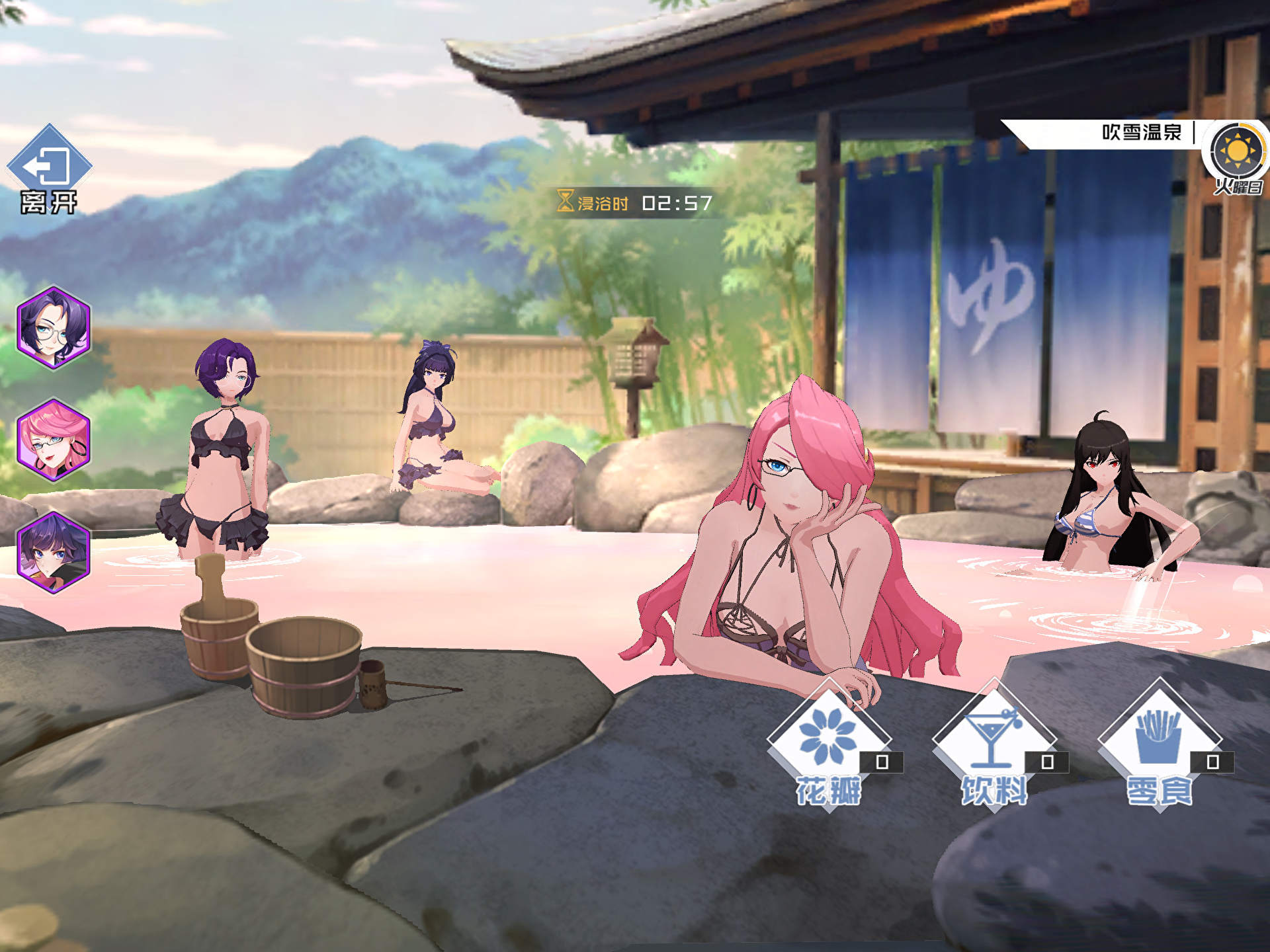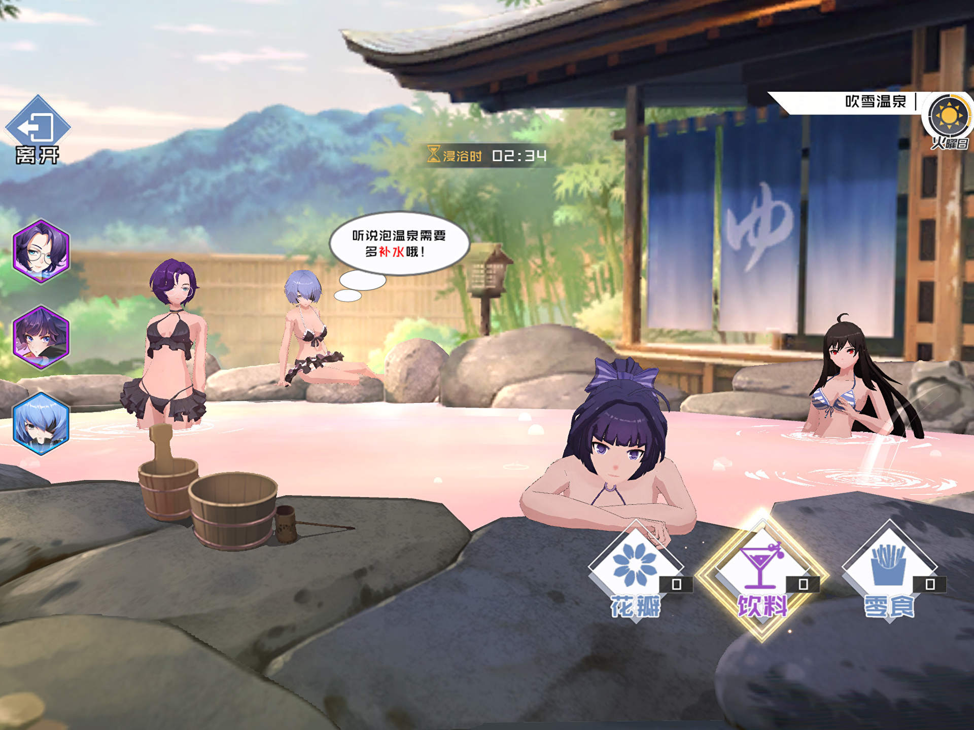 泡溫泉能提高與姬友的好感度,送禮品可能可以提高的更多(?),不過筆者才剛玩也沒有禮物可以送姬友 ╮(╯▽╰)╭