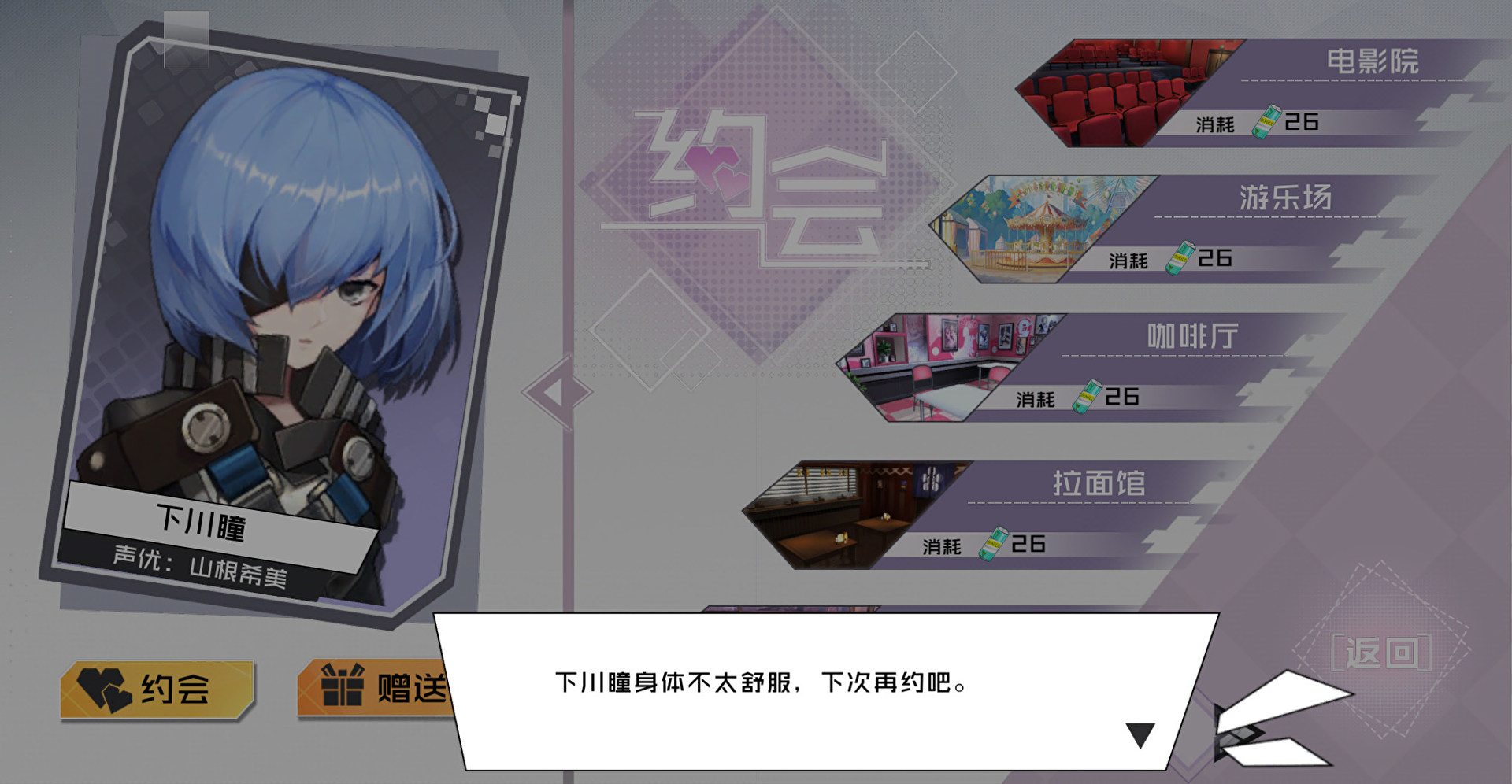 好感度不夠的情況下好像無法順利的約出來...所以約出來能做什麼事情,筆者也不知道╮(╯▽╰)╭