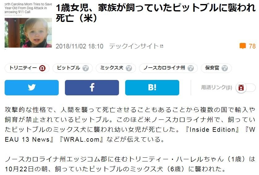 1歳女児、家族が飼っていたピットブルに襲われ死亡(狂犬病)③