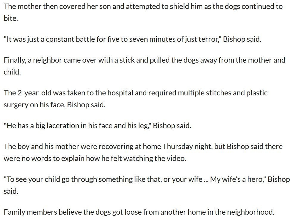 The mother then covered her son and attempted to shield him as the dogs continued to bite.