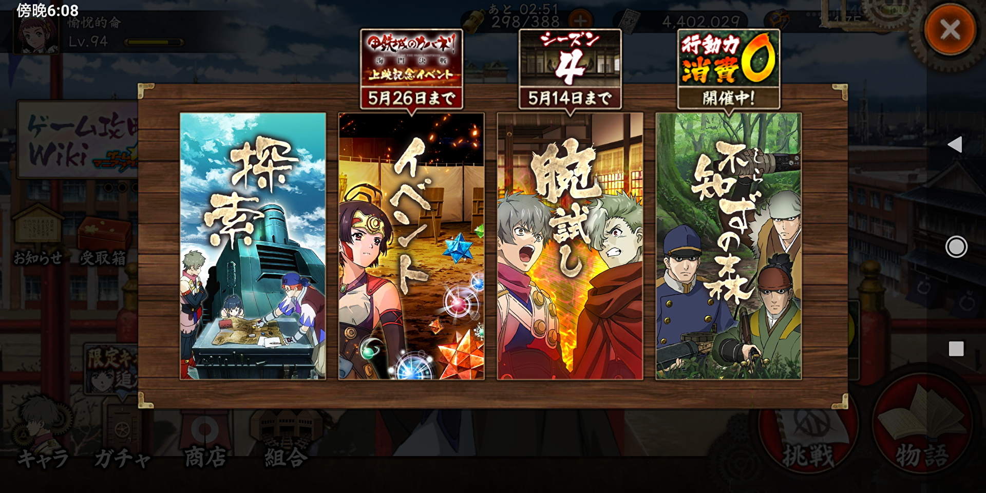 開局後,第一件事就是過主線劇情開其他模式,角色只先練主力5位不要全角色平均練。"不知ずの森"就一般遊戲的"爬塔"打寶,就量力而為打一打可拿貴重的石頭和覺醒用品,每月15日會重置一次。而"腕試"玩家對戰這就不用多說明了,有挑戰次數就多去打,無論輸贏都會有獎勵很重要。