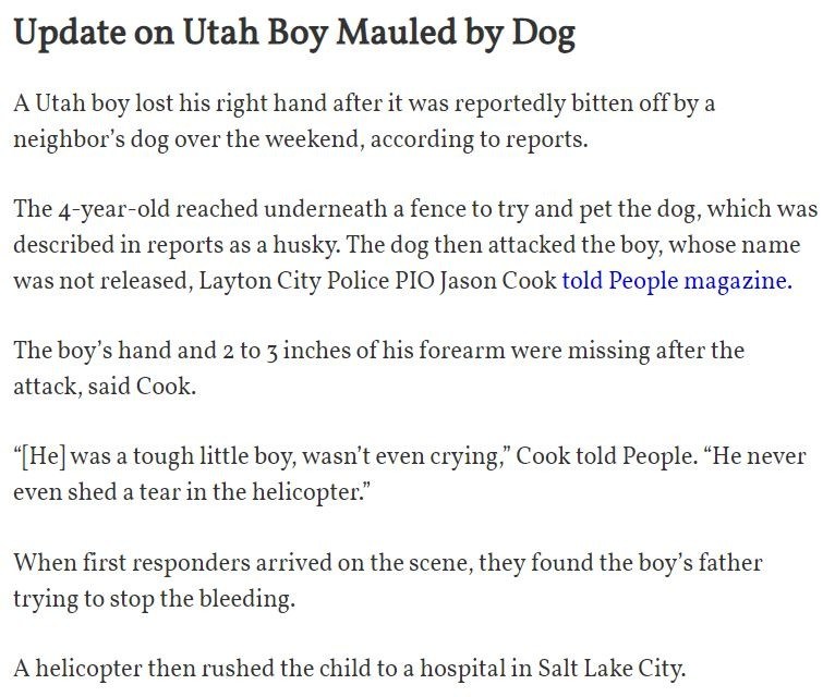 Update on Utah Boy Mauled by Dog