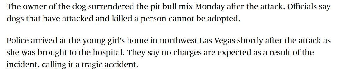 Police arrived at the young girl's home in northwest Las Vegas shortly after the attack as she was brought to the hospital. They say no charges are expected as a result of the incident, calling it a tragic accident.