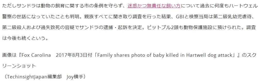【海外発!Breaking News】祖母が飼っていたピットブル、1歳孫を噛み殺す(米)(狂犬病)②