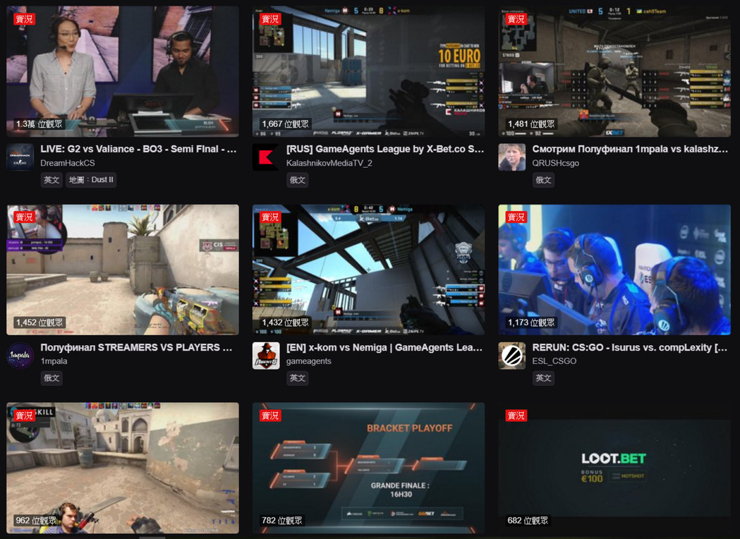 ↑ 《CS: GO》同一賽事,通常會有不同語言的實況主做解說。