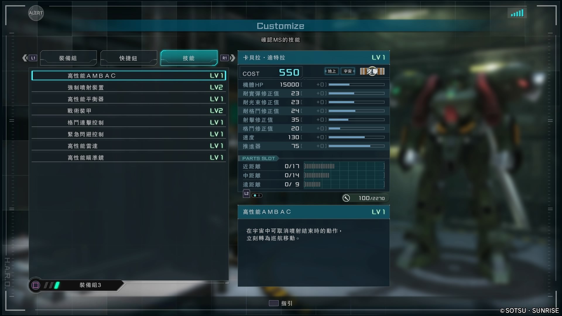 搭配高噴氣量、強制噴射2、AMBAC、緊急迴避,造就此機體極高的敏捷性