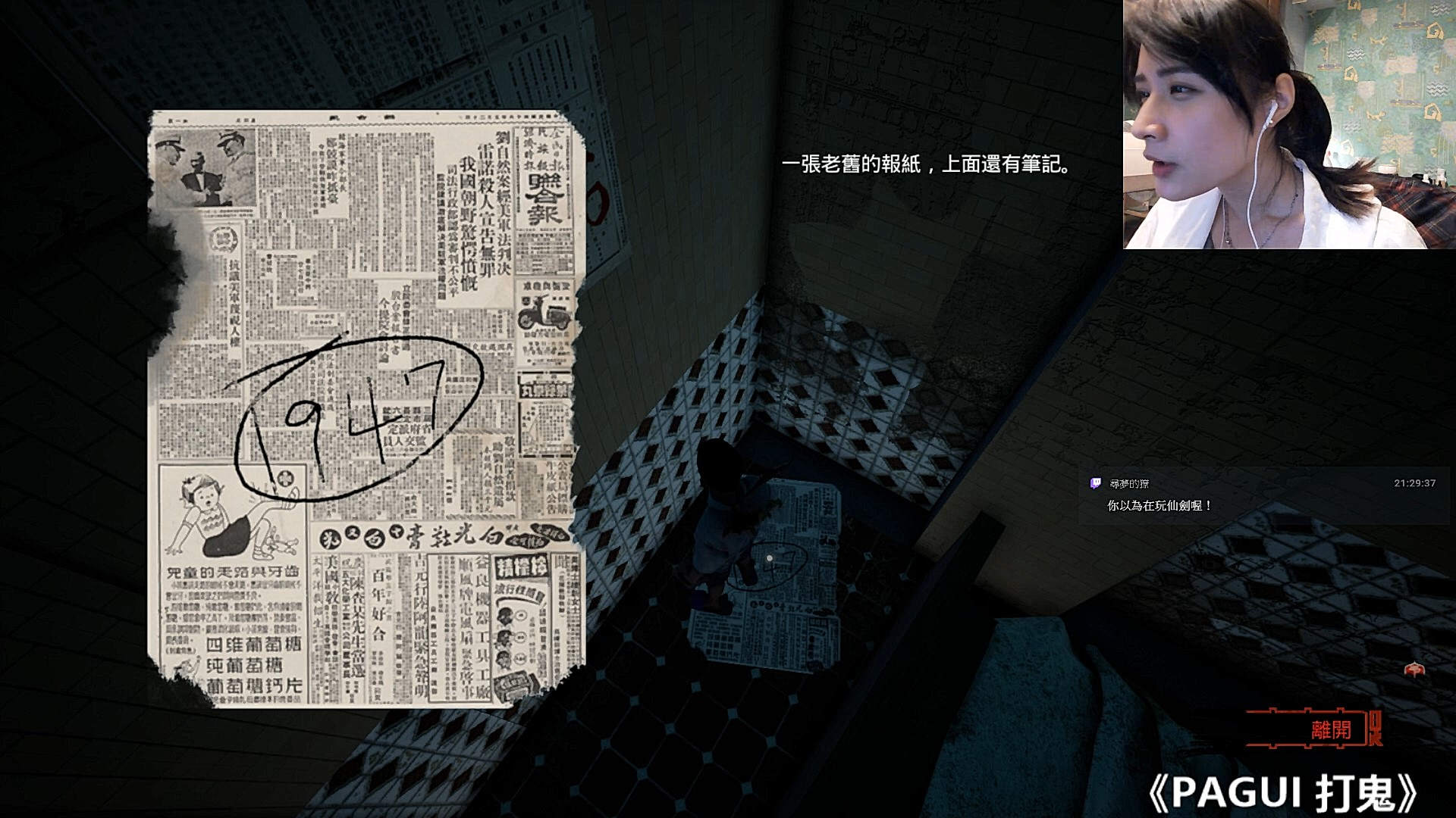 從遊戲內與阿嬤的對話中得知,村裡的人被「清鄉」死了很多人,以及丈夫擔任「調解委員」遇害,二樓散落的報紙上也得到1947的密碼提示等...,不難猜出這是一個跟白色恐怖有關的作品。