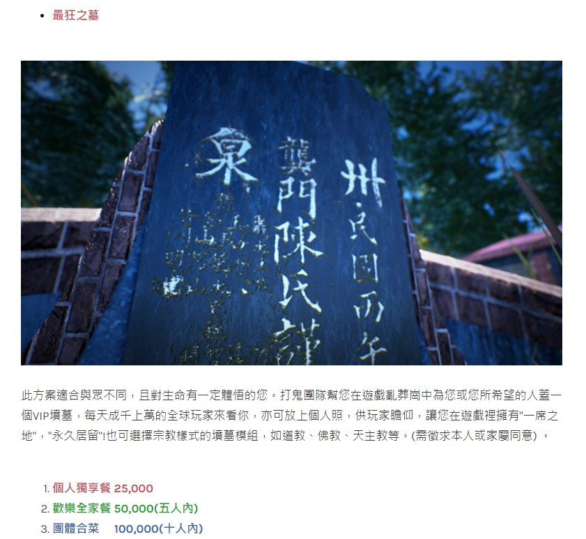 (是說一開始募資的時候,有一個豪華方案,可以置入自己的名字跟照片在墓碑上= =,甚至還有全家福套組…ㄜ….不管團隊吃了什麼…都給我來一些)