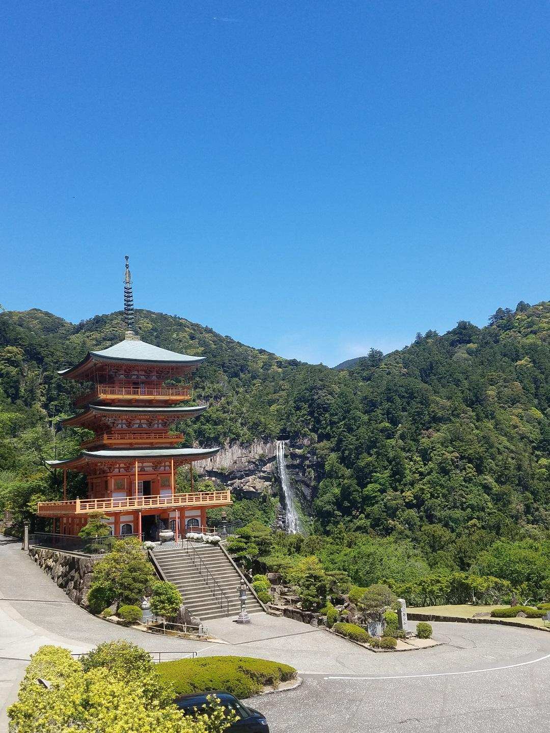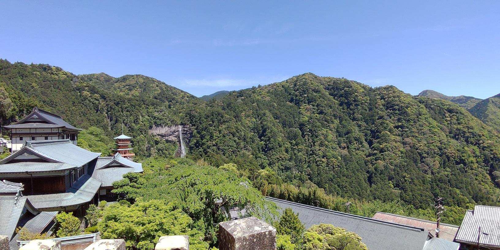 旁邊的觀景台能夠拍到很棒的那智山景, 不遠處的就是那智三重塔跟瀑布