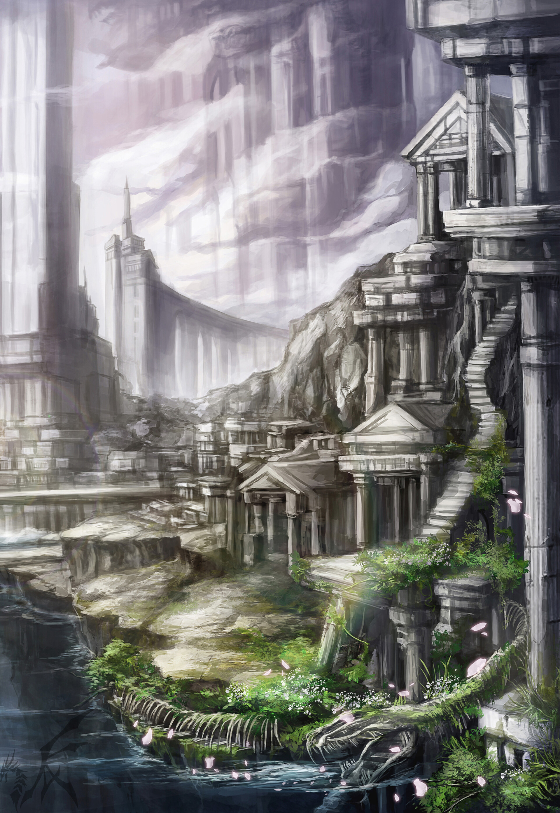 領地:生死河-蛇骨城 原 參考希臘 神殿雷吉翁 蛇骨城 作畫過程
