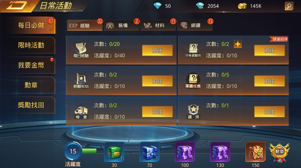 遊戲本身的活動玩法非常豐富,不管你什麼時候上限都有活動可以參加,每個活動的玩法都不太一樣,除此之外每天必做的任務、活動也非常多,不是單純上線刷BOSS打副本掛網這麼簡單而已,但就算你真的沒時間解任務跟跑活動也沒關係,遊戲有很貼心的「獎勵找回」功能,隔天把獎勵都拿回來就可以了。