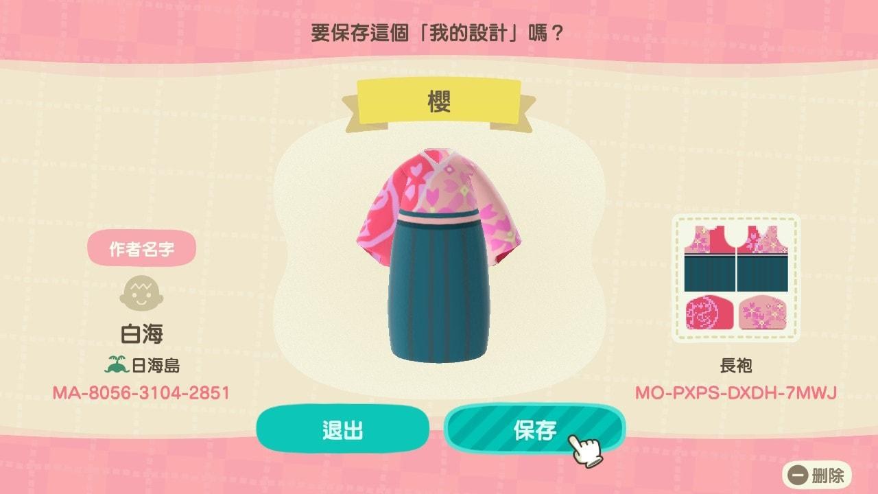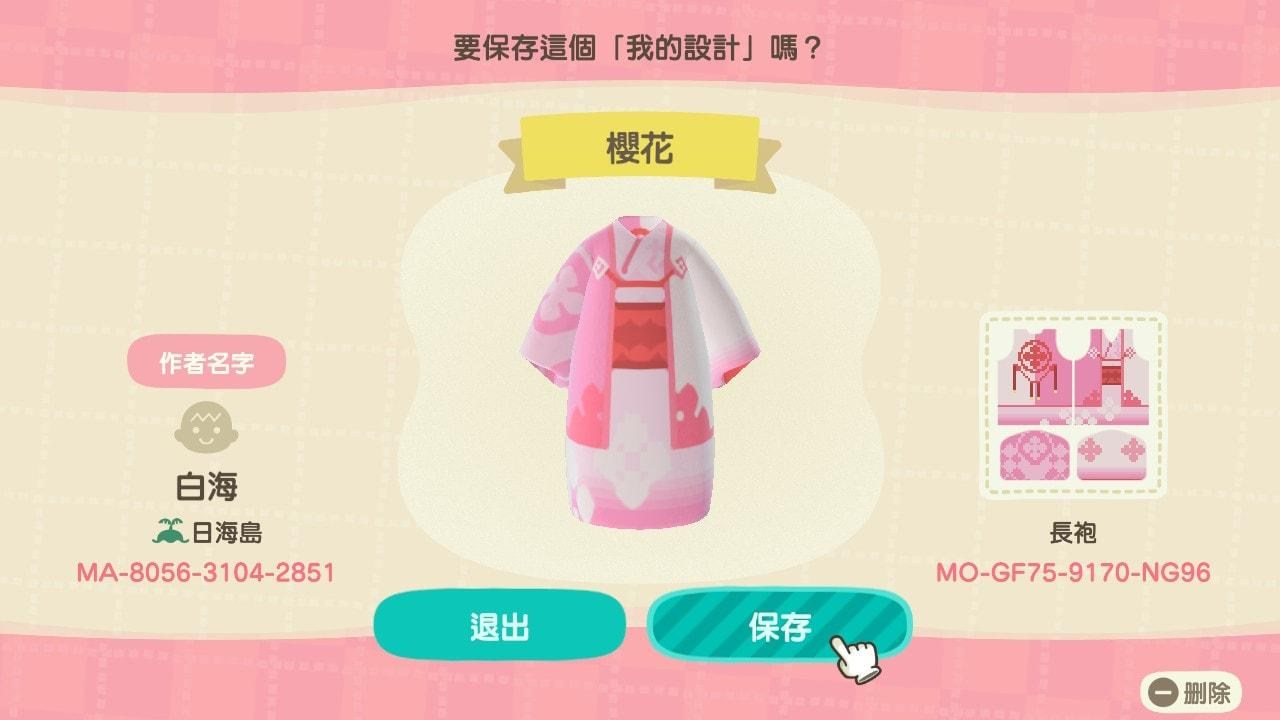 ▲《動物森友會》只要在作者ID輸入8056-3104-2851,就能夠為自己的角色換上白海設計的衣服(圖/白海提供)