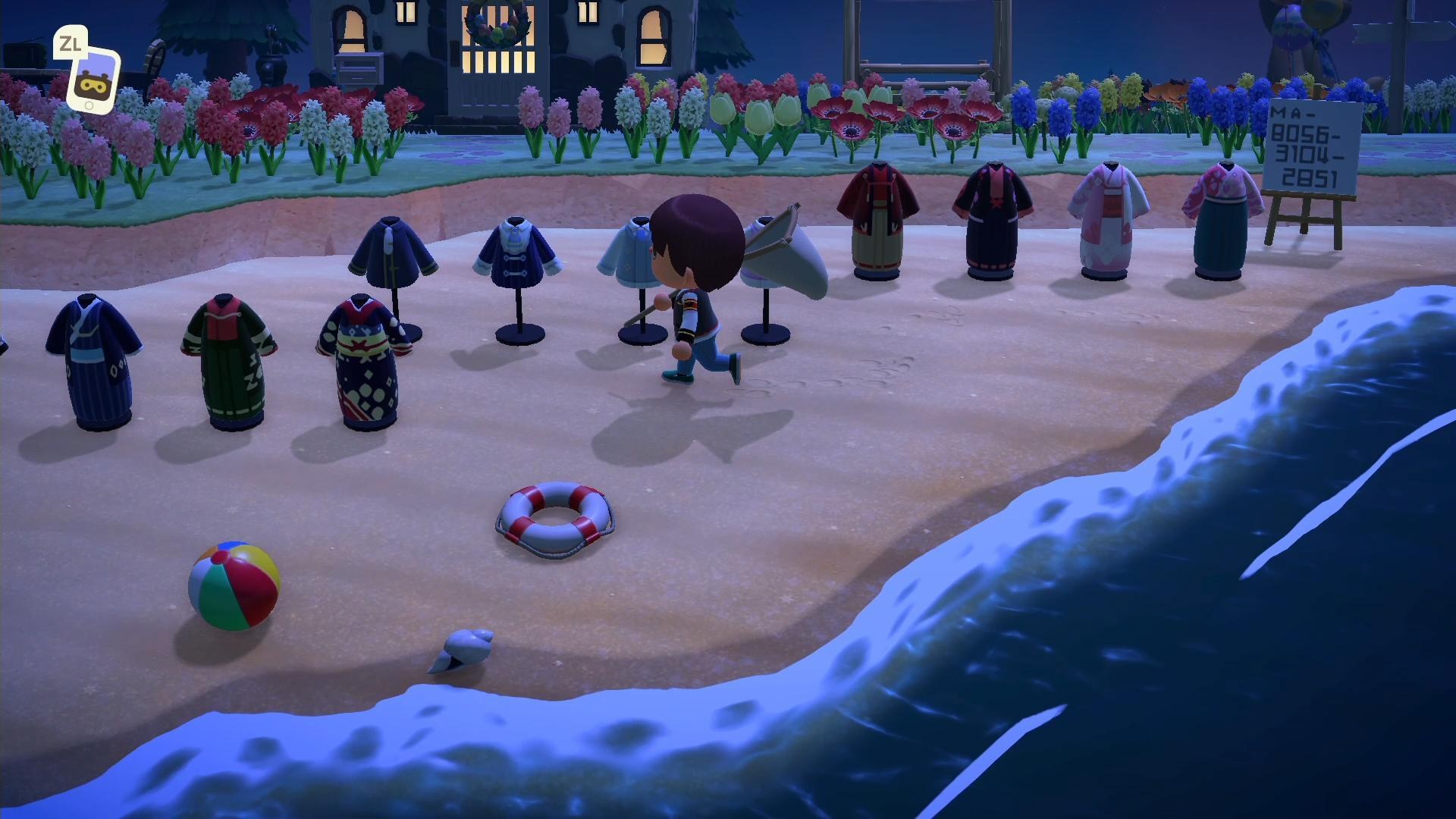 ▲《動物森友會》白海在沙灘上展示他所有設計的作品。(圖/Po提供,翻攝自Potv)