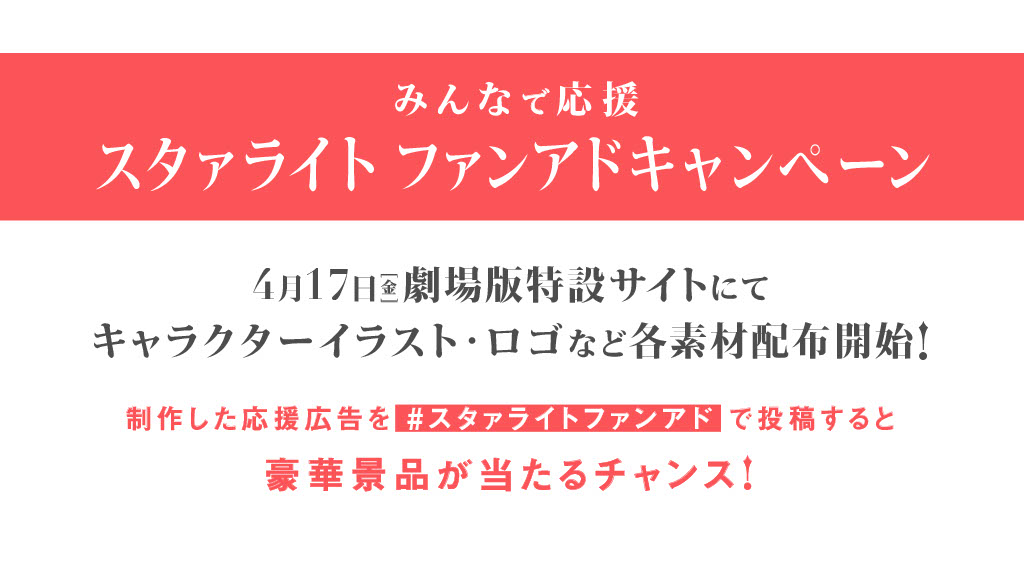 此外,為紀念線上傳單手渡會的舉行將展開推文轉推活動,跟隨 官方推特 同時觀看線上傳單手渡會影像並轉推指定貼文即可抽選含 CAST 親筆簽名之劇場版傳單,第一彈為 飾演 愛城華恋 的 小山百代,其活動轉推 指定貼文 以及 線上傳單手渡會影像 皆以公開。