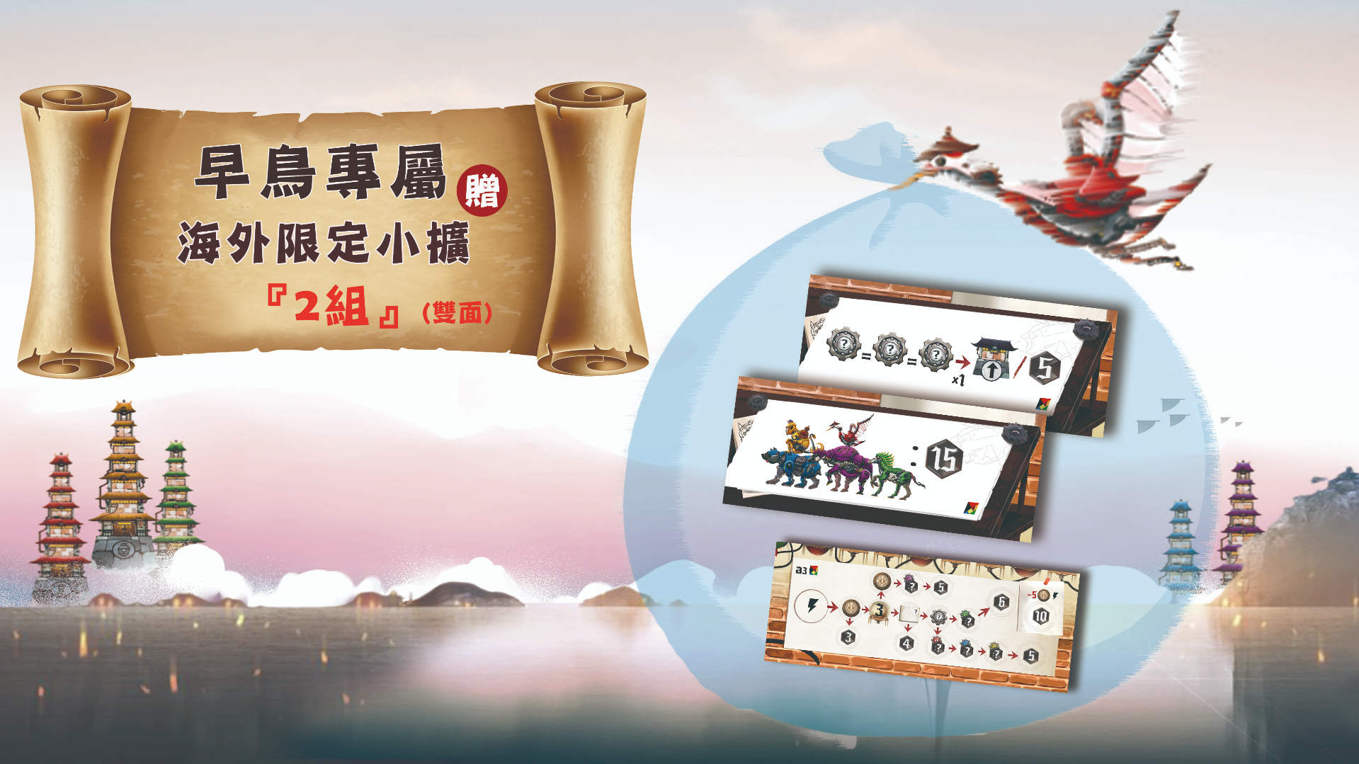 現在遊戲在6/11前預購就會附送兩個特殊小擴充,可以增加遊戲時的取分方式,豐富遊戲的玩法!