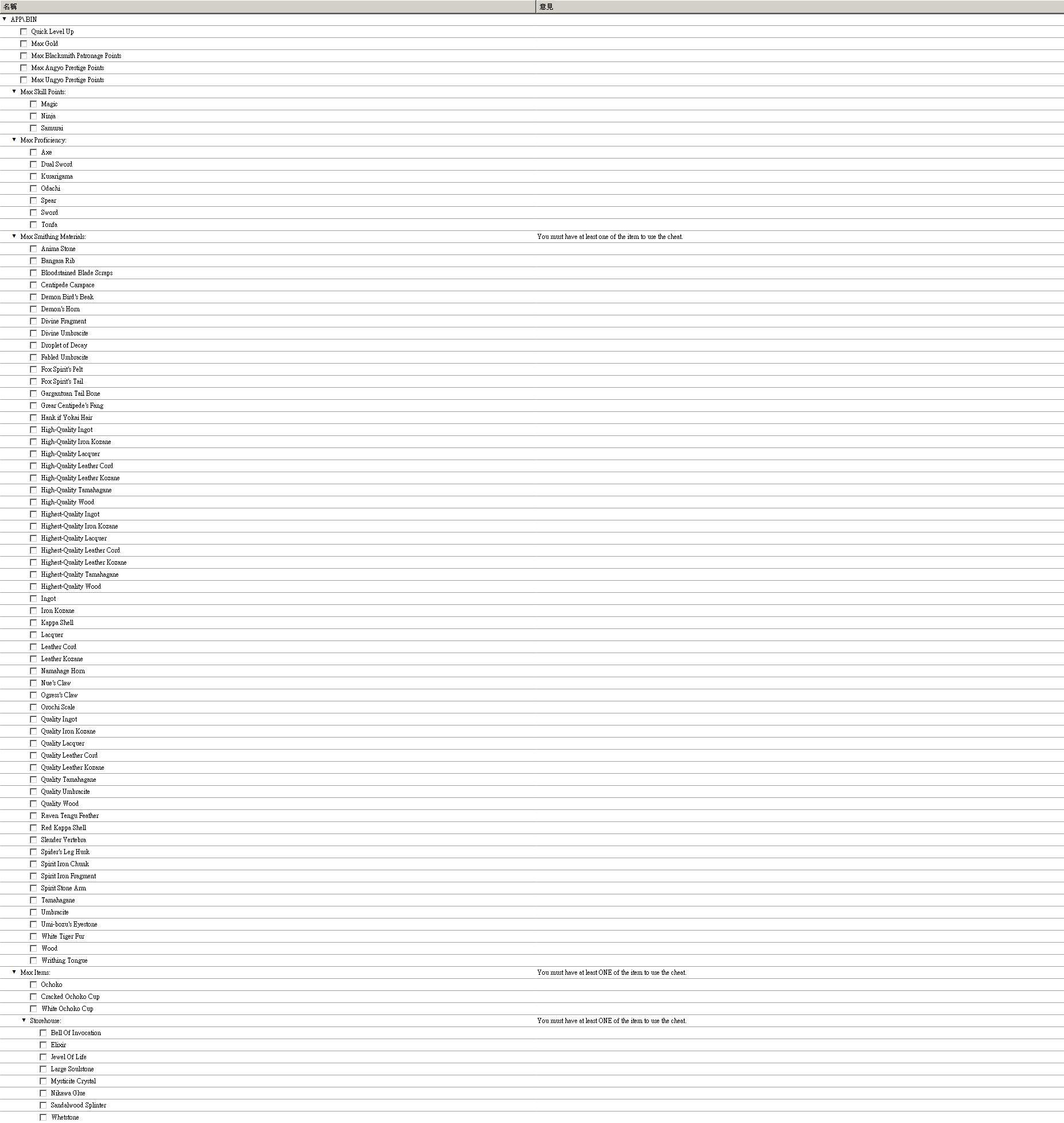 | Max Smithing Materials(最大化鍛造鋪道具) 各道具需至少擁有一個 |