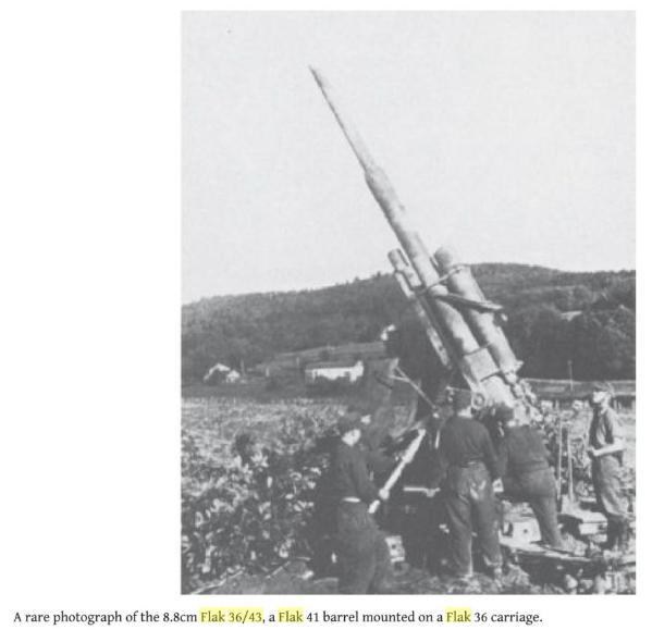 在《German Artillery of World War Two》一書中有flak 36/43型的照片,41型的砲管裝在36型的砲架上,砲管還是L74。