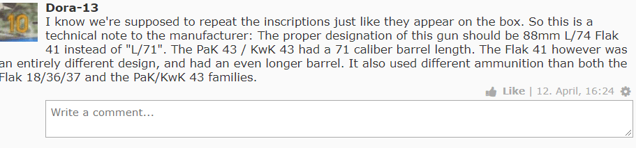 模型製作完成後,網友提出了質疑: 「Flak41我記得是74倍徑,71倍徑是Pak43」