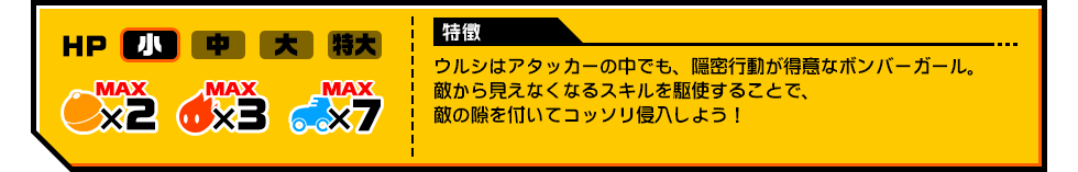 第一個要來介紹的,是玩家們一開始就可以使用的ATTACKERオレン(小橘),