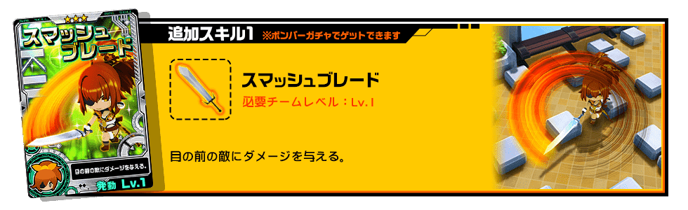 追加技能1:スマッシュブレード (揮砍斬擊) 需要隊伍等級Lv.1 需透過抽卡獲得