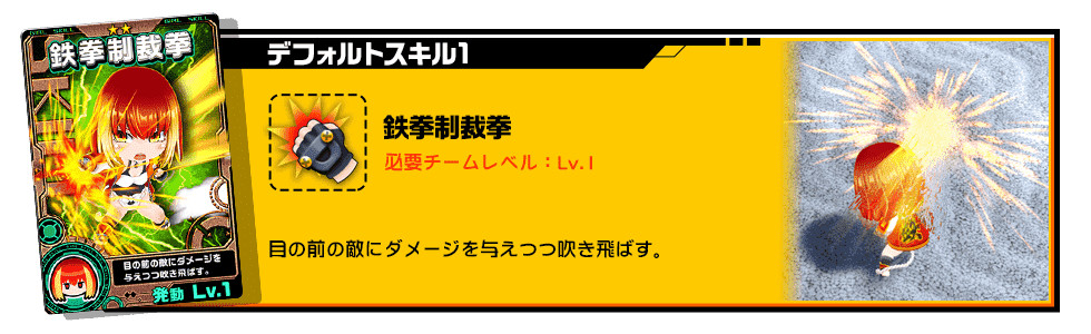 基礎技能1: 鉄拳制裁拳 (鐵拳制裁拳) 需要隊伍等級Lv.1