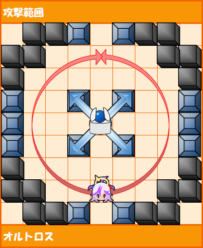 對前方22格的距離發射會爆破的毀滅光束,範圍極長,一發傷害約300。