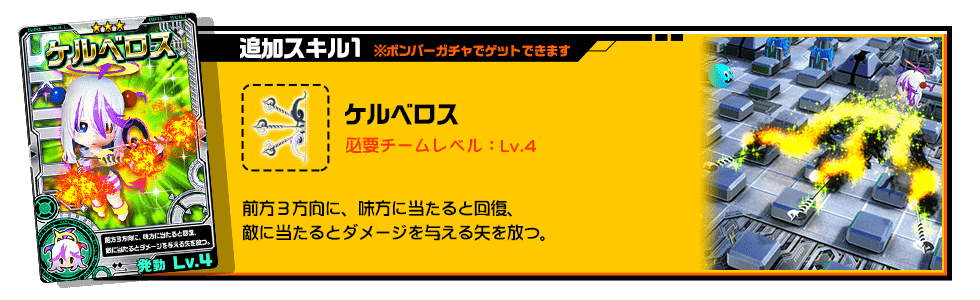 追加技能1: ケルベロス (刻耳柏洛斯) 需要隊伍等級Lv.4 需透過抽卡獲得