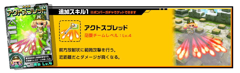 追加技能1: アクトスプレッド (Act Spread) 需要隊伍等級Lv.4 需透過抽卡獲得