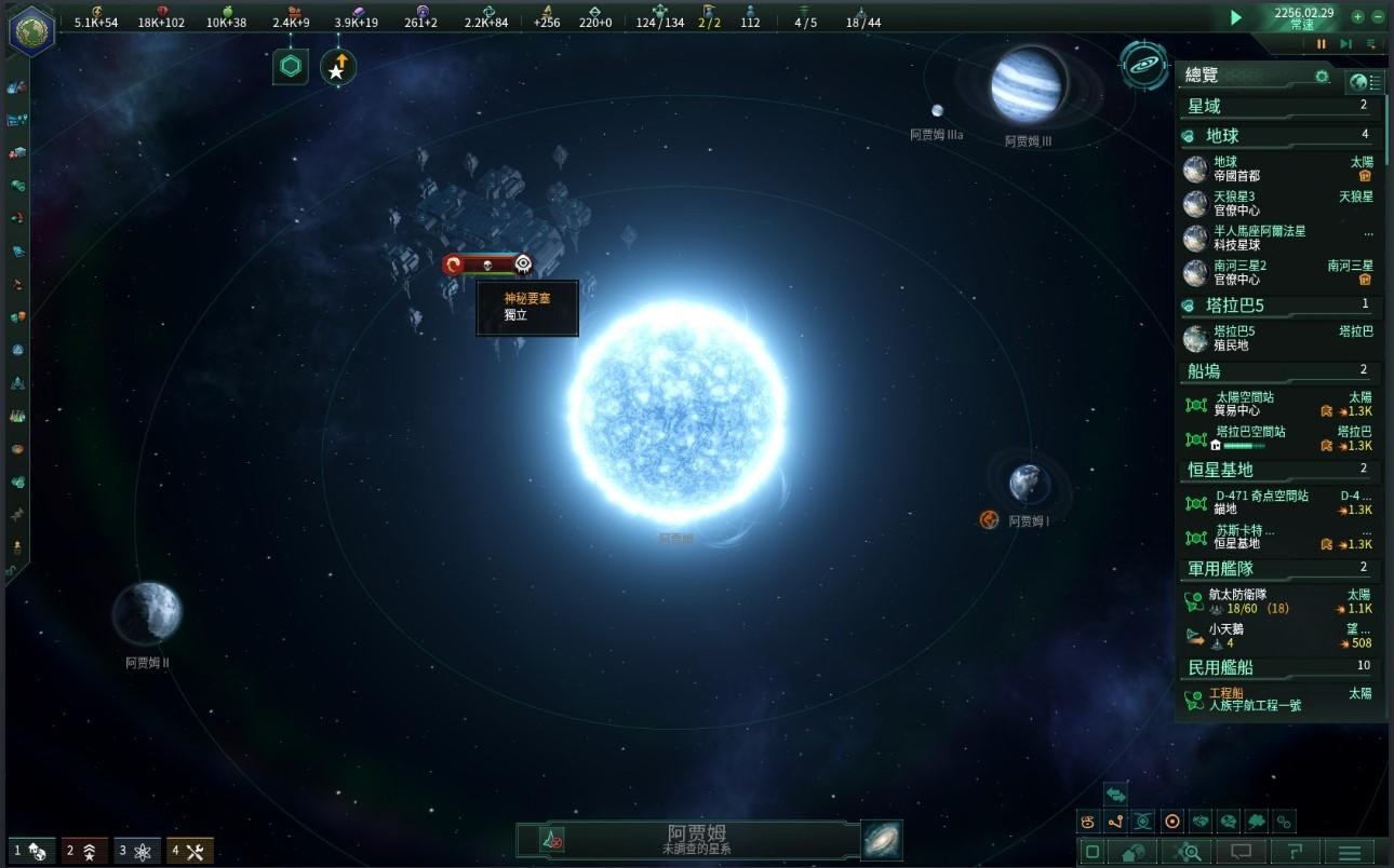 2256年,科研船在阿賈姆星系內發現了奇怪具敵意的外星堡壘,還好科研船現在皆已裝備跨星系探測儀器了,不需要親自駛入該星系冒險,由於其體積龐大且似乎有武裝,我方發射到該星系的無人艇發送的訊息也未獲回應,為了避免意外,聯合國已通知所有人類飛船勿前往該恆星系以免發生不測。