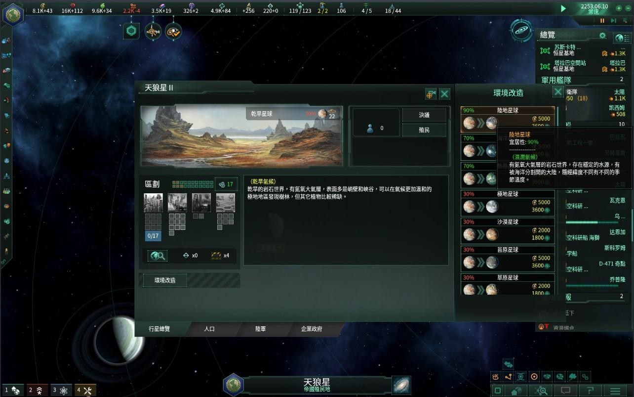2252年底,對於行星氣候的改造研究終於有了完整的進展,2253年,在進行完環境影響評估後,地球聯合國正式對領域內的行星展開了氣候改造計畫,使其更適合人類生存。首先兩個行星是位於太陽系不遠的賽尼德斯星系以及天狼星軌道上的的第二顆行星,由於行星級工程浩大,預估要花上十年的時間改造才能將行星氣候改造成適合人類居住的大陸型行星。