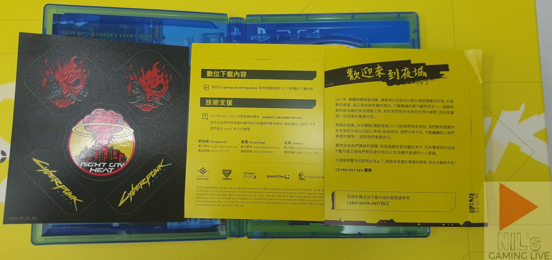 還有一份貼紙跟歡迎玩家來到夜城的黃色小卡。