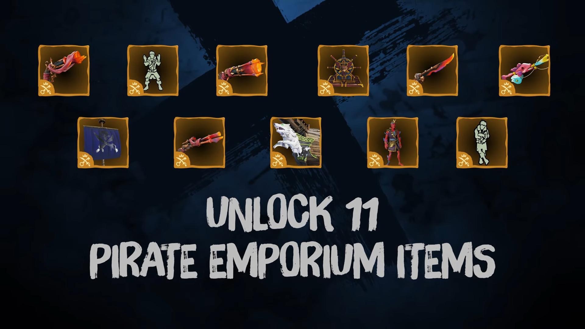 擁有掠奪通行證的海盜,將能夠在賽季獎勵中再額外獲得來自海盜百貨的11個商品,其中還包含從沒見過的喔!