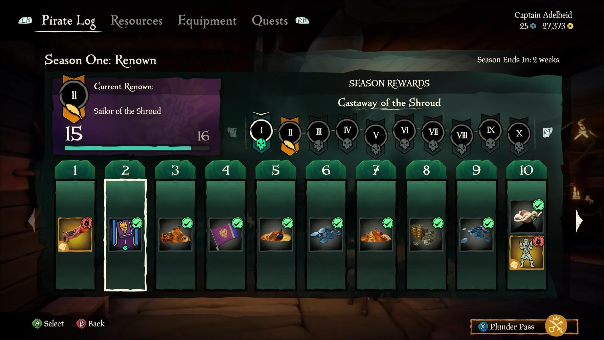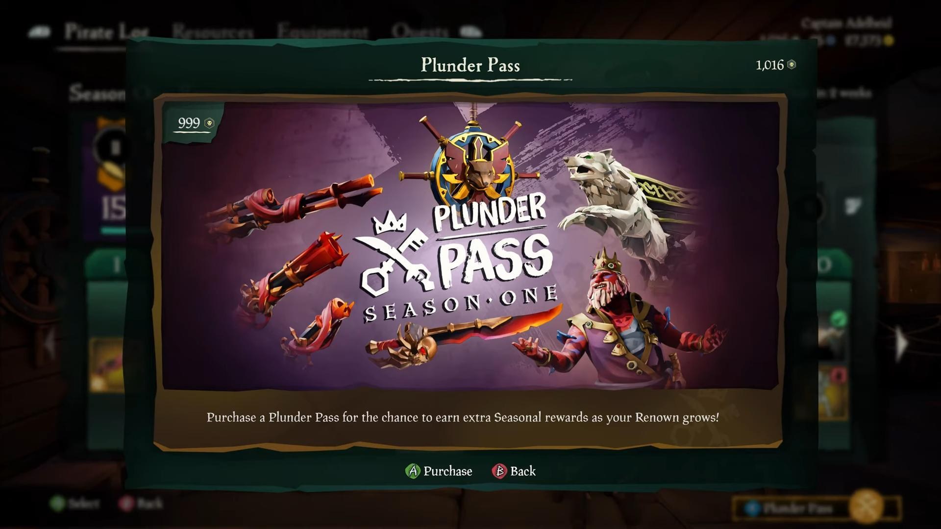 Plunder Pass掠奪通行證可以在海盜百貨中購買,並且在這個賽季中的任何時候都行。只要擁有掠奪通行證後,有符合階級解鎖的獎勵,都能馬上獲得。不用擔心獲得太晚,而錯過之前的賽季獎勵。
