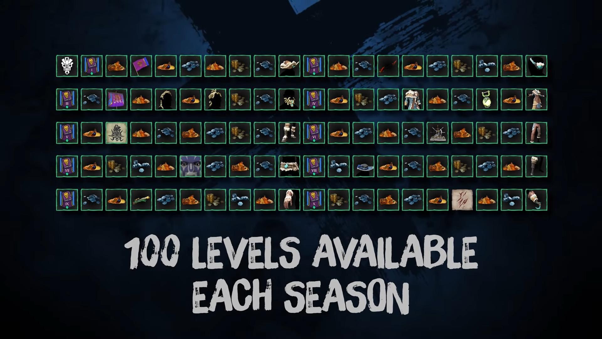 海盜們在盜賊之海的世界中旅行和冒險時,都有機會可以解鎖賽季獎勵。每個賽季都會有共100階的內容,其中包含造型、金幣、古代幣等等。