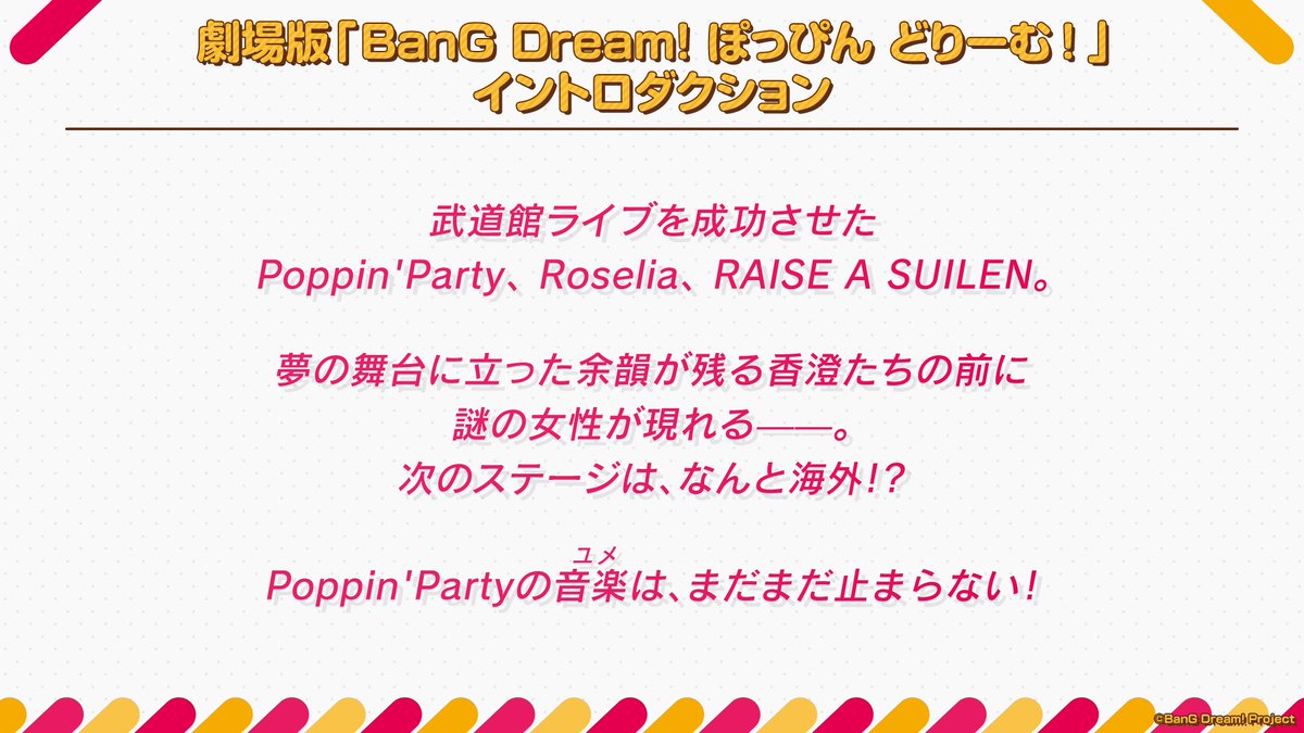 由日本娛樂公司 Bushiroad 策畫的多媒體企劃《BanG Dream!》,官方在今(6)日進行的「BanG Dream!劇場作品大發表會」當中,釋出旗下劇場版作品的最新情報。